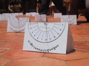 กระดาษแข็งขนาด A4 หนาไม่น้อยกว่า 180 แกรม จำนวน 2 แผ่น พิมพ์รูปนาฬิกาแดดแบบศูนย์สูตร