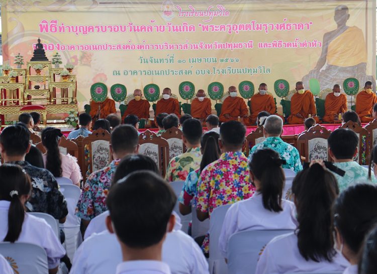 พิธีทำบุญครบรอบวันคล้ายวันเกิดพระครูอุตตโมรุวงศ์ธาดา ฉลองอาคารอเนกประสงค์ อบจ.ปทุมธานี และพิธีรดน้ำดำหัว
