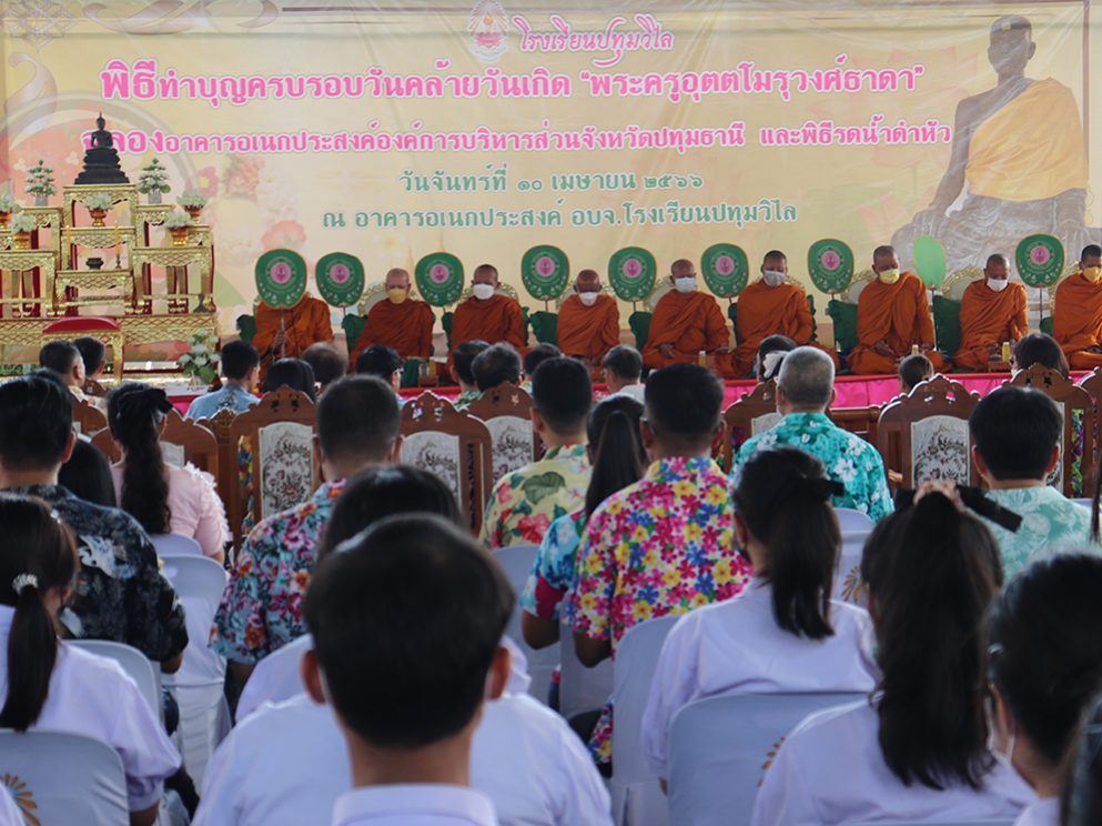 วันที่ 10 เมษายน 2566 โรงเรียนปทุมวิไล จัดพิธีทำบุญครบรอบวันคล้ายวันเกิดพระครูอุตตโมรุวงศ์ธาดา ฉลองอาคารอเนกประสงค์ อบจ.ปทุมธานี และพิธีรดน้ำดำหัว โดยมี พล.ต.ท.คำรณวิทย์ ธูปกระจ่าง นายก อบจ.ปทุมธานี ประธานในพิธี ร่วมด้วย ดร.เอกพรต สมุทธานนท์ ผู้อำนวยการโรงเรียนปทุมวิไล คณะผู้บริหาร คณะครู และครอบครัวปทุมวิไล โดยยอดเงินทำบุญจำนวน 75,032 บาท และเงินทำบุญ PW Cafe ศูนย์ฝึกอบรมอาชีพ (โครงการทำบุญ 1 บาท / 1 แก้ว) จำนวน 10,005 บาท รวมเงินทำบุญทั้งสิ้น 85,037 บาท ยอดเงินทั้งหมดมอบให้กับมูลนิธิพระครูอุตตโมรุวงศ์ธาดา