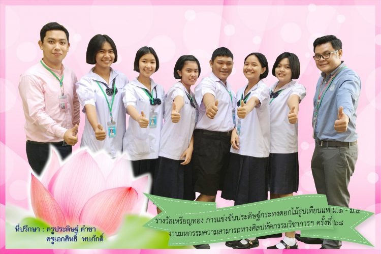 รางวัลเหรียญทอง การแข่งขันประดิษฐ์กระทงดอกไม้ธูปเทียนแพ ม.1-ม.3 งานมหกรรมความสามารถทางศิลปหัตถกรรมวิชาการฯครั้งที่ 68