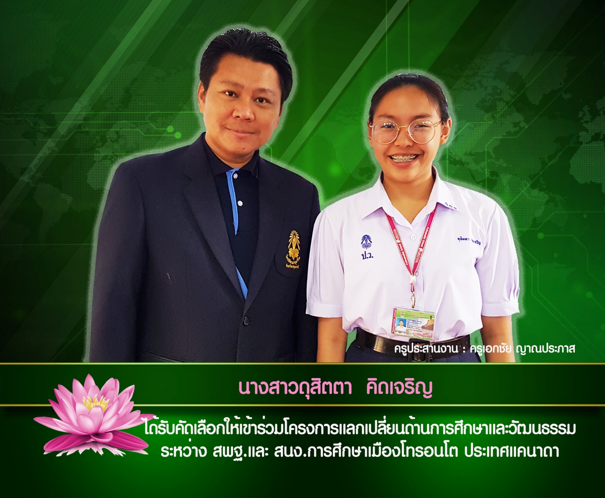 ได้รับคัดเลือกให้เข้าร่วมโครงการแลกเปลี่ยนด้านการศึกษาและวัฒนธรรมระหว่างสพฐ.และสนง.การศึกษาเมืองโทรอนโต ประเทศแคนาดา