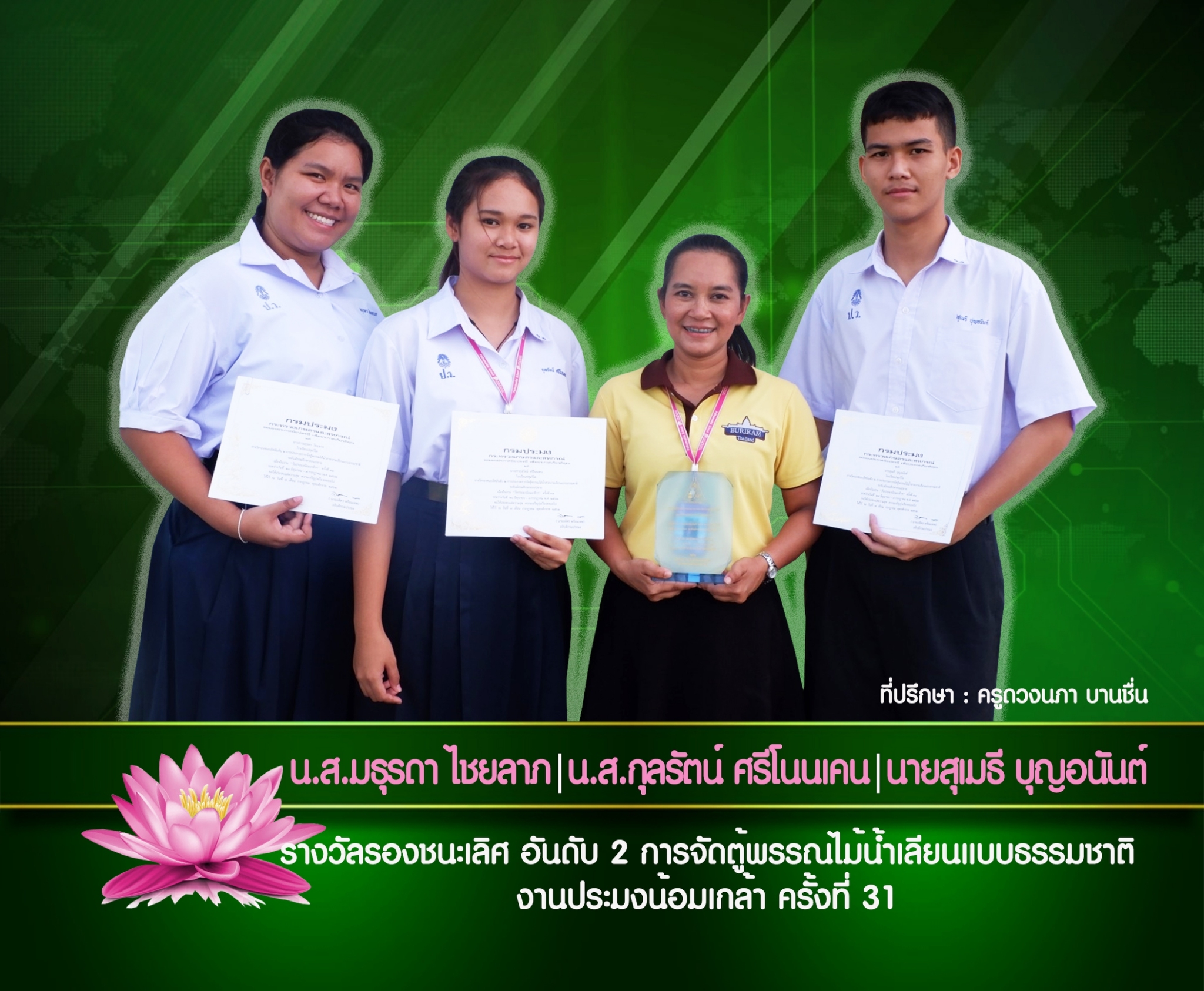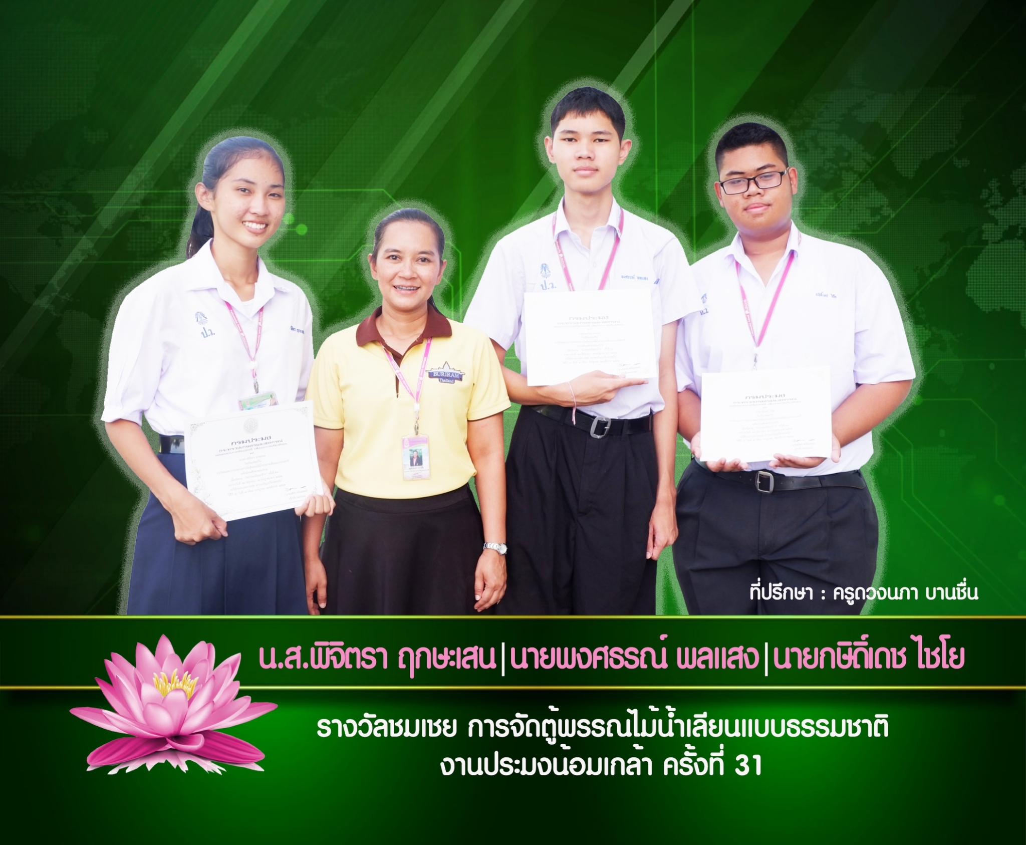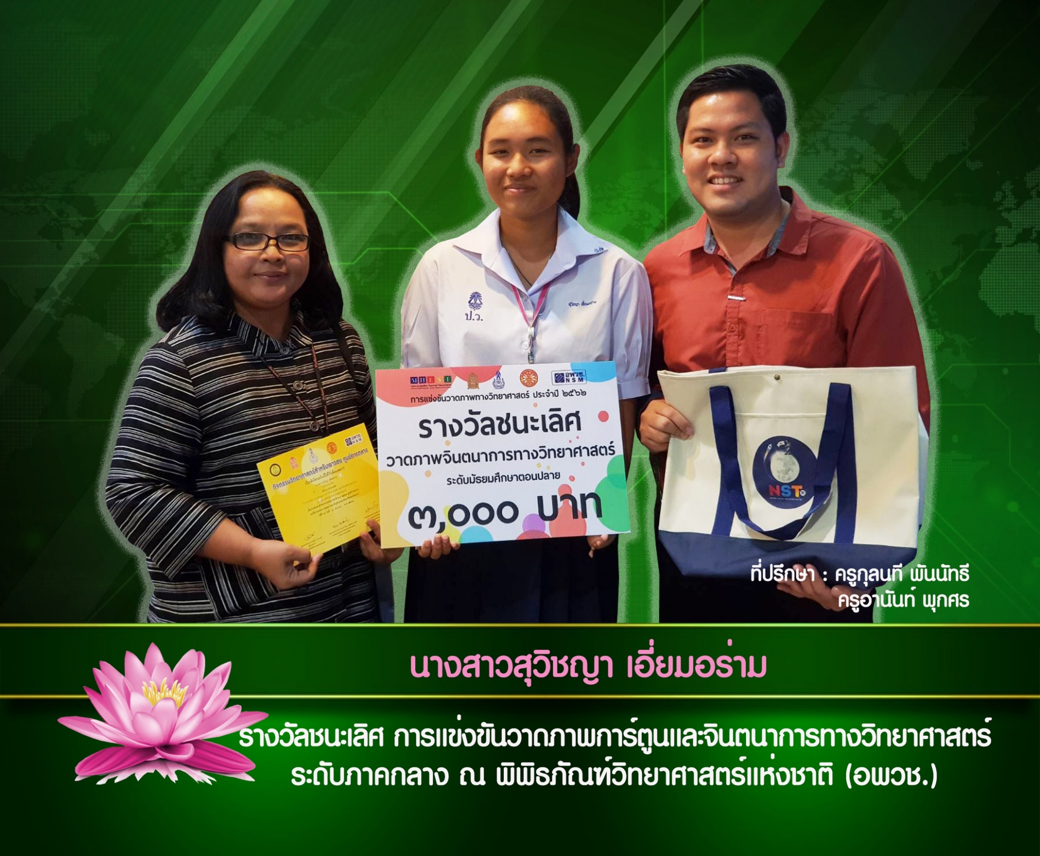 นางสาวสุวิชญา เอี่ยมอร่าม ครูที่ปรึกษา ครูกุลนที พันนัทธี และครูอานันท์ พุกศร