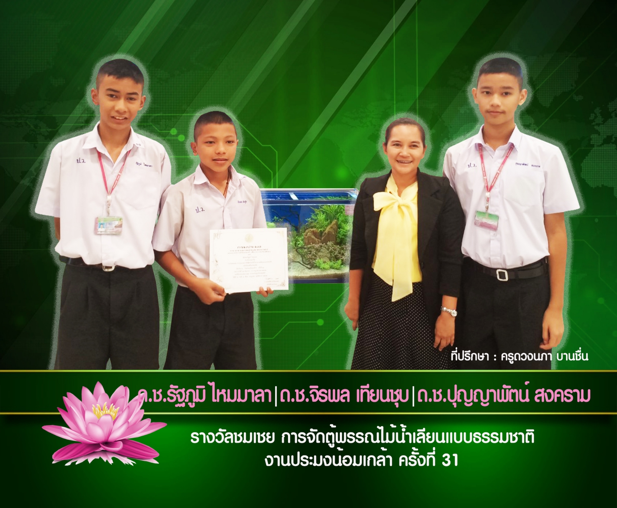 ด.ช.รัฐภูมิ ไหมมาลา ด.ช.จิรพล เทียนชุบ ด.ช.ปุญญาพัตน์ สงคราม ครูที่ปรึกษา ครูดวงนภา บานชื่น
