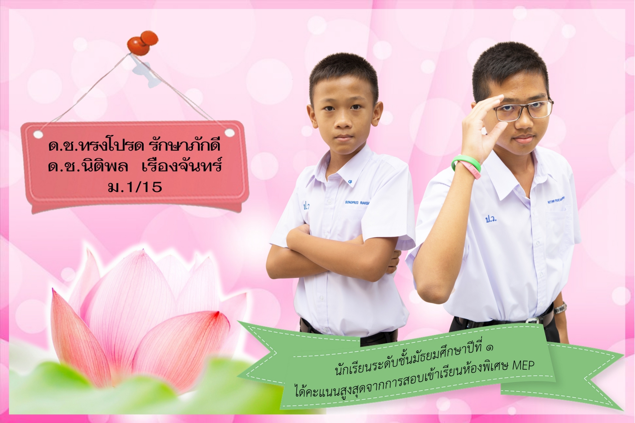 ด.ช.ทรงโปรด รักษาภักดี ด.ช.นิติพล เรืองจันทร์ ม.1/15