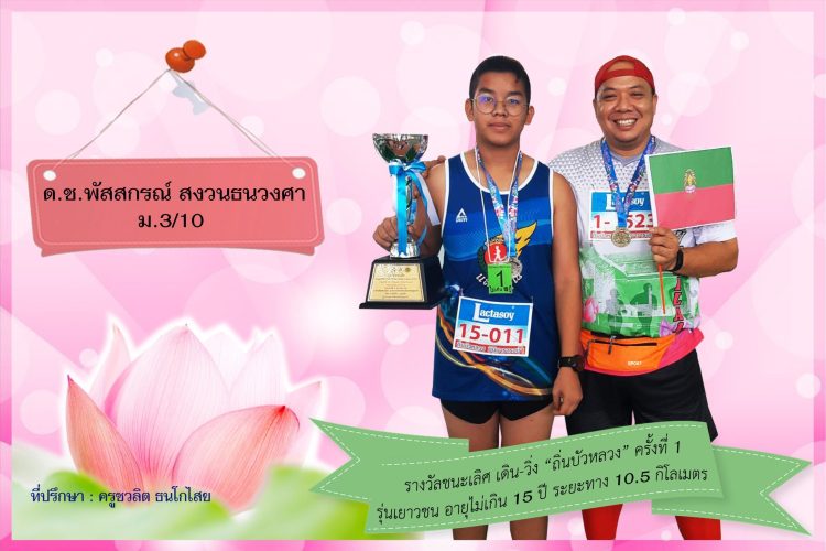 รางวัลชนะเลิศเดิน-วิ่ง “ถิ่นบัวหลวง” ครั้งที่ 1 รุ่นเยาวชน อายุไม่เกิน 15 ปี ระยะทาง 10.5 กิโลเมตร