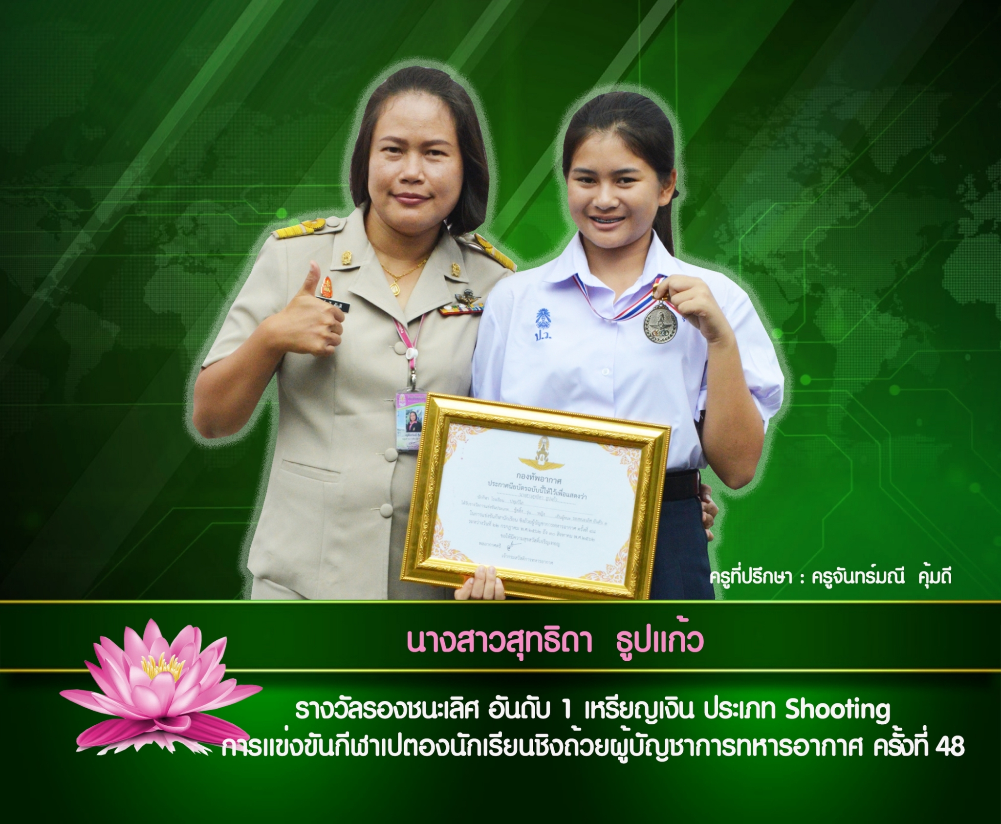 นายธนกฤต วายุพัฒน์ ครูที่ปรึกษา ครูจันทร์มณี คุ้มดี
