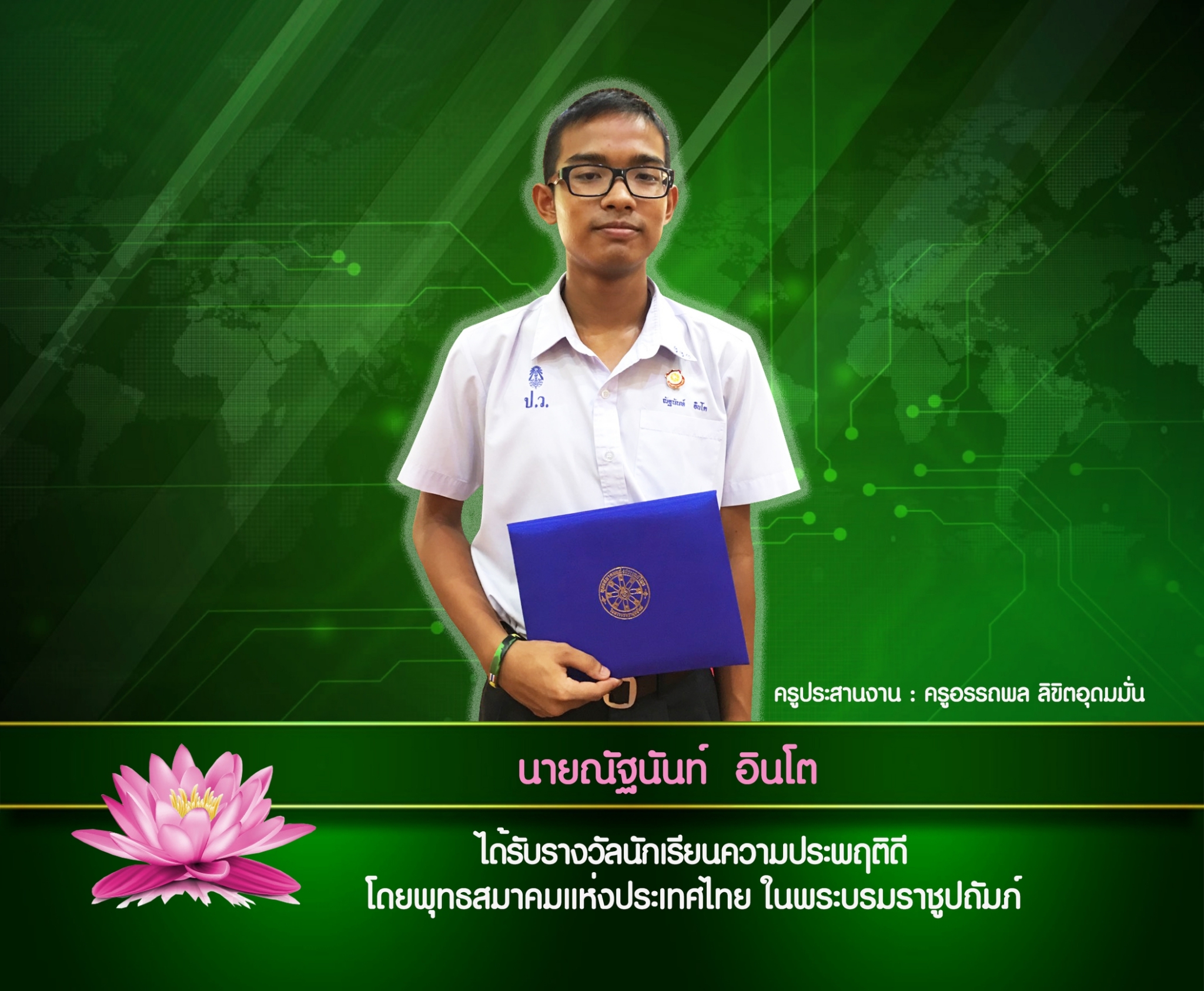 เด็กชายณัฐวัชร สีนวล ครูที่ปรึกษา ครูอรรถพล ลิขิตอุดมมั่น