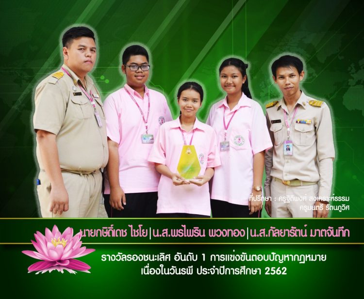 นายกษิดิ์เดช ไชโย นางสาวพรไพริน พวงทอง นางสาวกัลยารัตน์ มาตจันถึก ครูที่ปรึกษา ครูฐิติพงศ์ สงเคราะห์ธรรม ครูมนตรี รัตนภูวิศ
