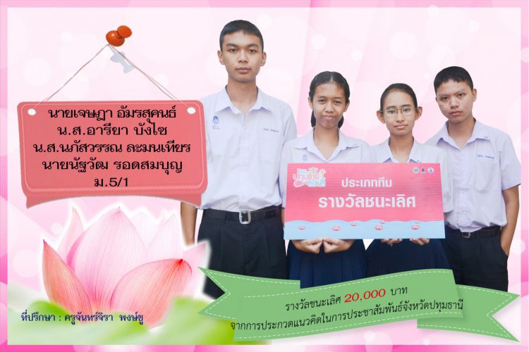 นายเจษฎา อัมรสุคนธ์ น.ส.อารียา บังไซ น.ส.นภัสวรรณ ละมนเทียร นายนัฐวัฒ รอดสมบุญ ม.5/1