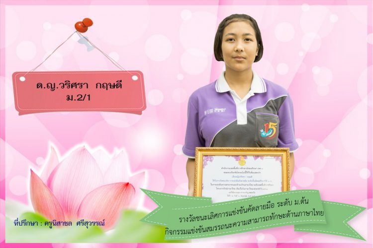 สอบได้คะแนน O-Net สูงสุดในรายวิชา สังคมศึกษา ภาษาต่างประเทศ และสุขศึกษา (ตามลำดับ) ระดับชั้นมัธยมศึกษาปีที่ 3 ปีการศึกษา 2557